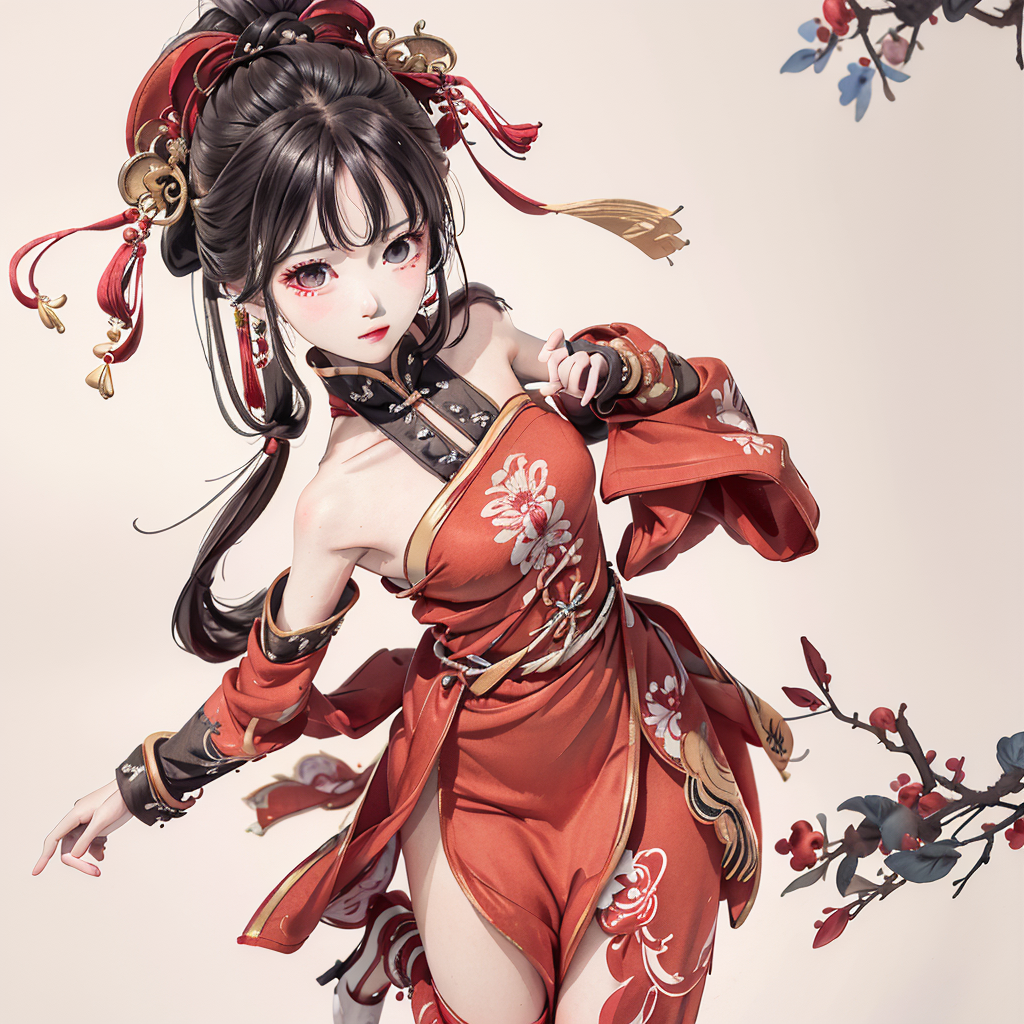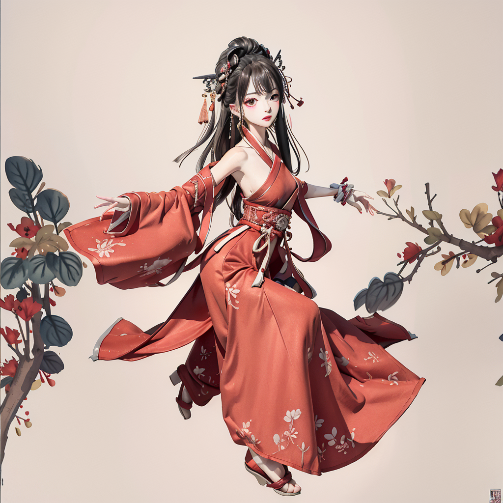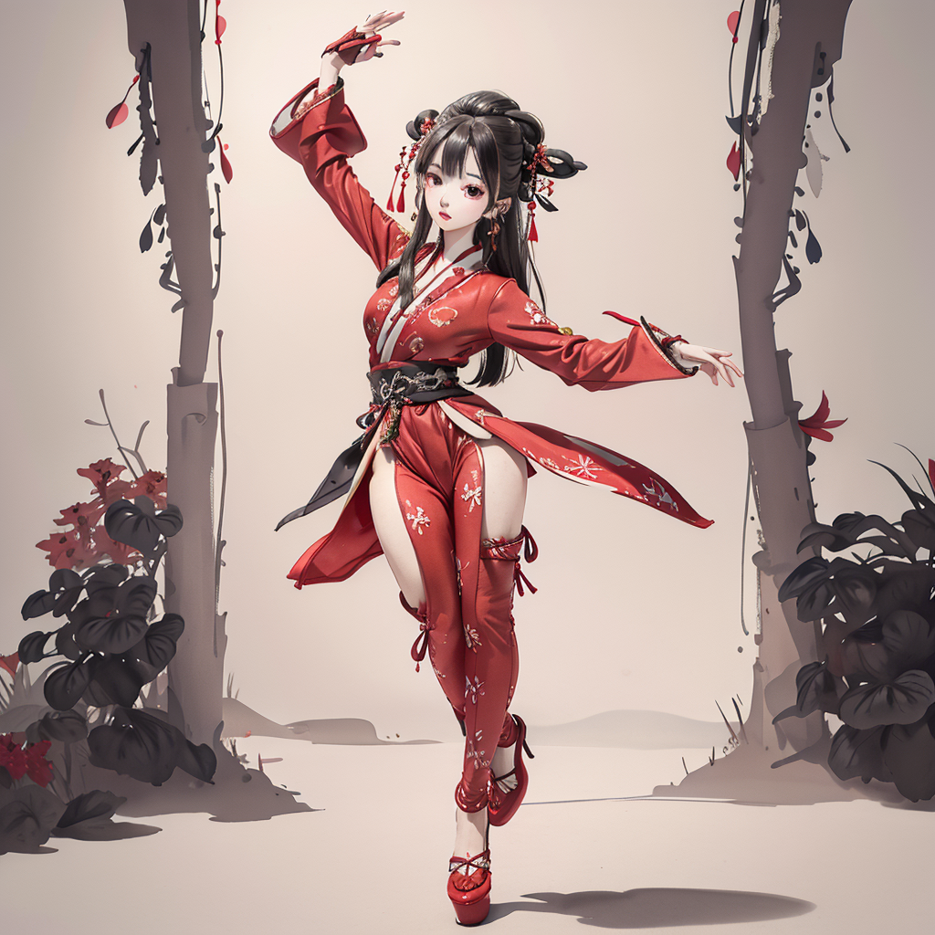 shuimobysim, badashanren, shukezouma, (masterpiece, best quality, high quality, highres, ultra-detailed),<lora:MoXinV1:0.6>, <lora:shukezouma_v1_1:0.6>,girl,dancing, red clothes,hanfu, sad,