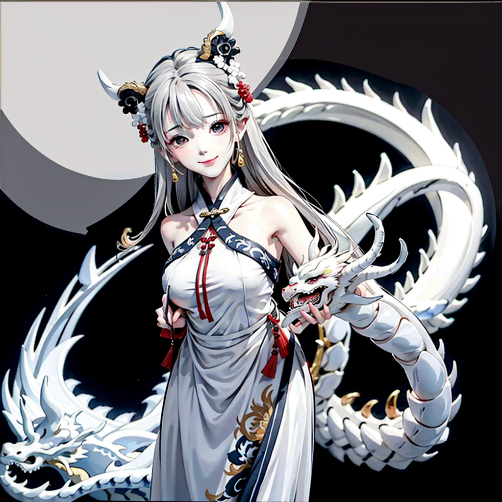 A white dragon with hudge dragon head, (A chinese dragon surrounded:1.3),