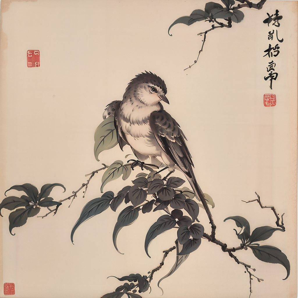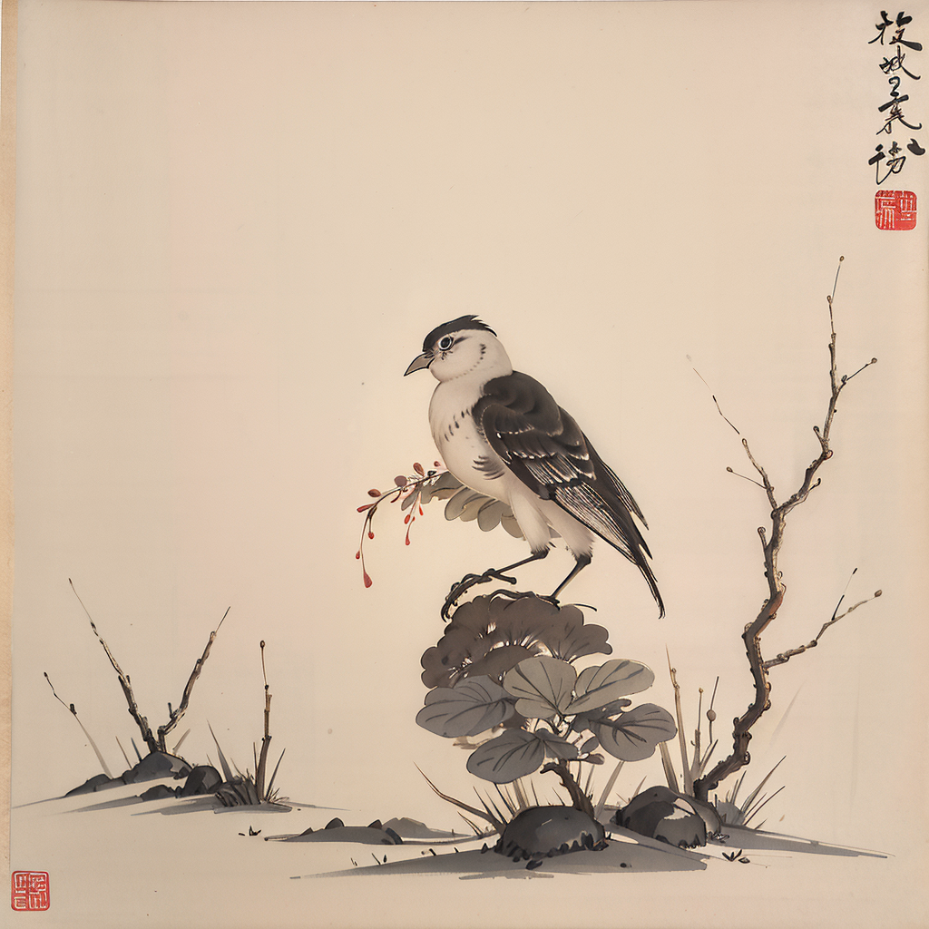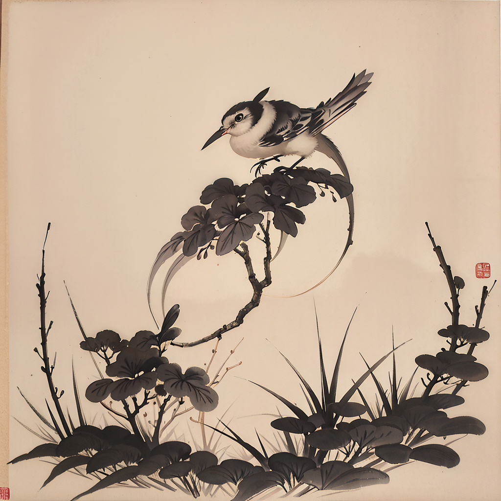典雅的小鸟水墨画