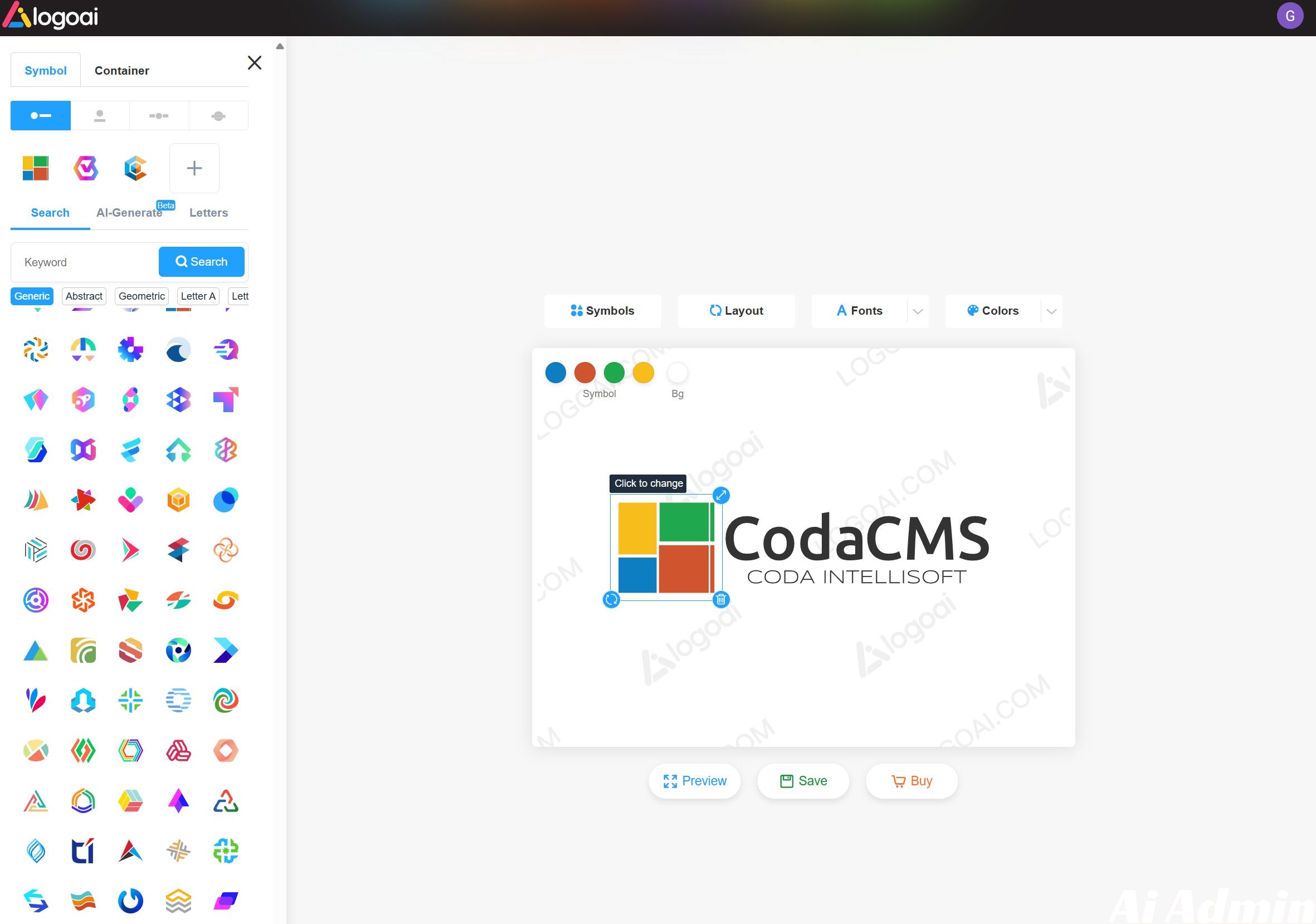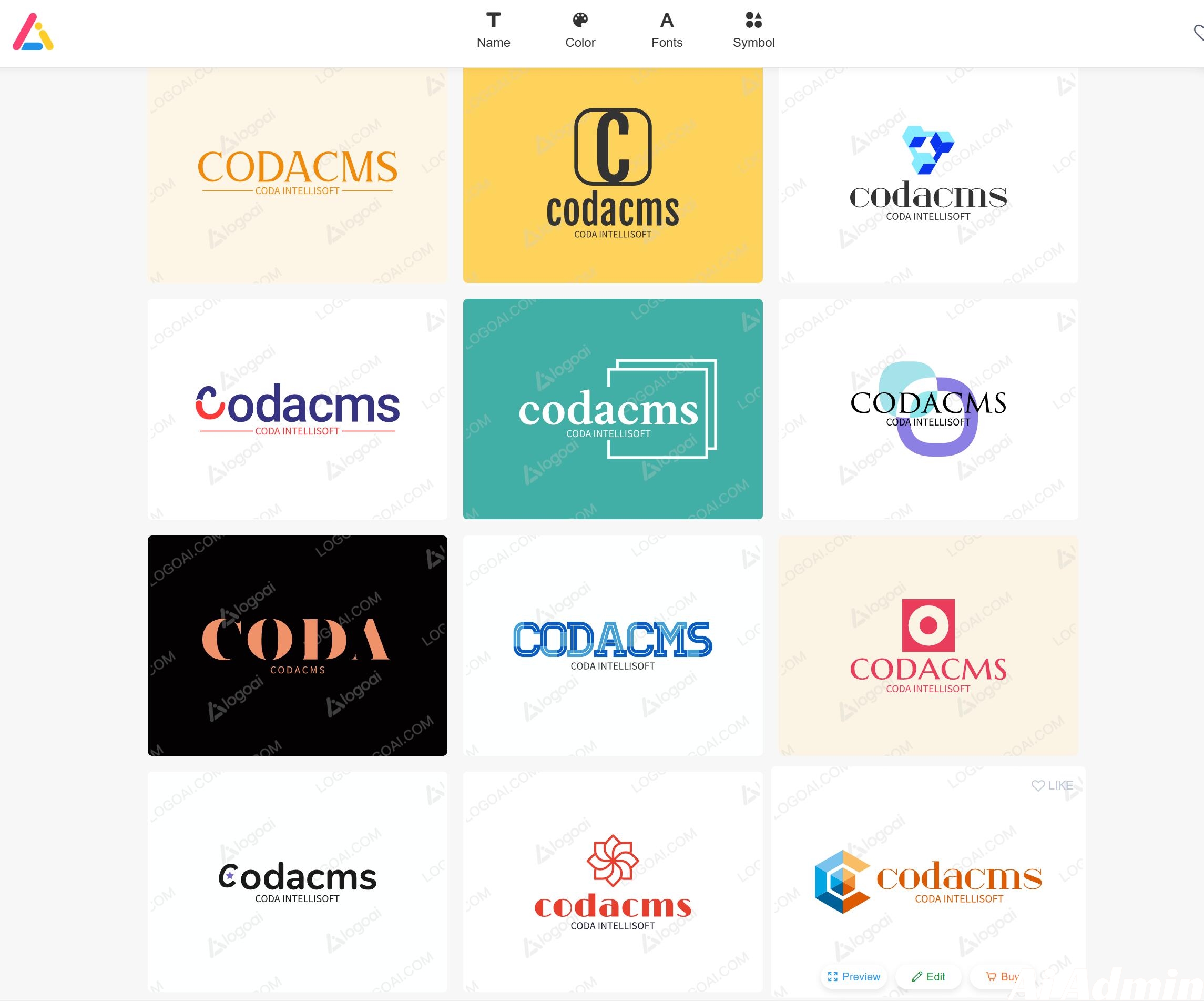 最后,点击生成,网站就会根据你的设置自动生成一系列 Logo 方案。你可以从中挑选最满意的一个,也可以继续调整细节,直到你完全满意为止。