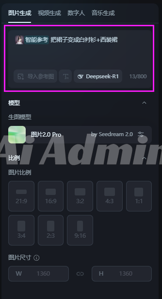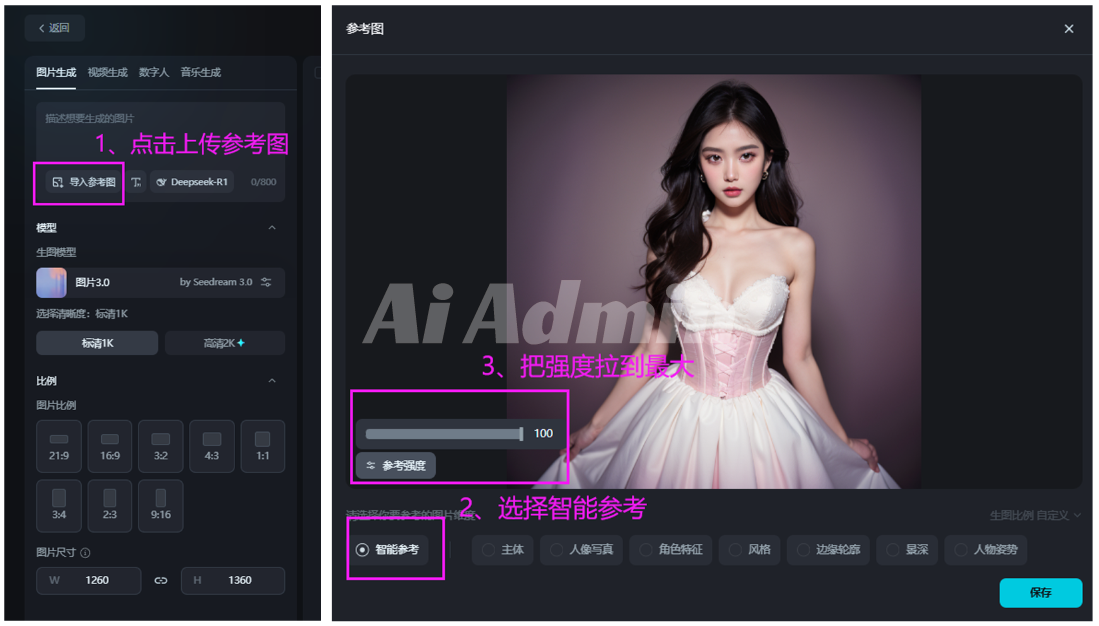 Step 2:即梦AI上传图+选择【智能参考】功能